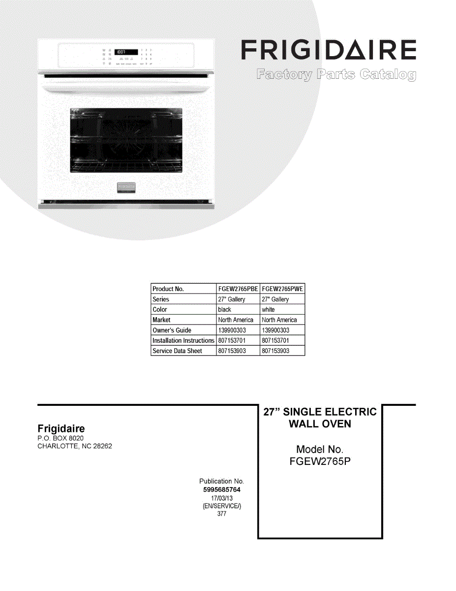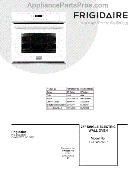 Parts for Frigidaire FGEW2765PWE: 01 - Cover Sheet Parts