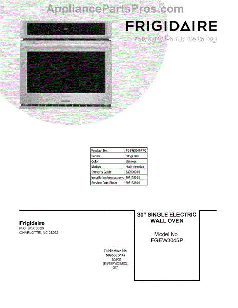 Parts for Frigidaire FGEW3045PFC: 01 - Cover Sheet Parts