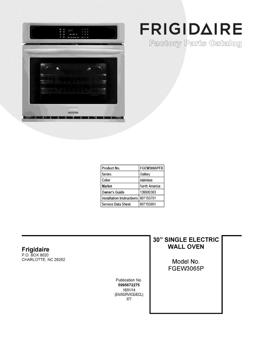 Parts for Frigidaire FGEW3065PFD: 01 - Cover Sheet Parts