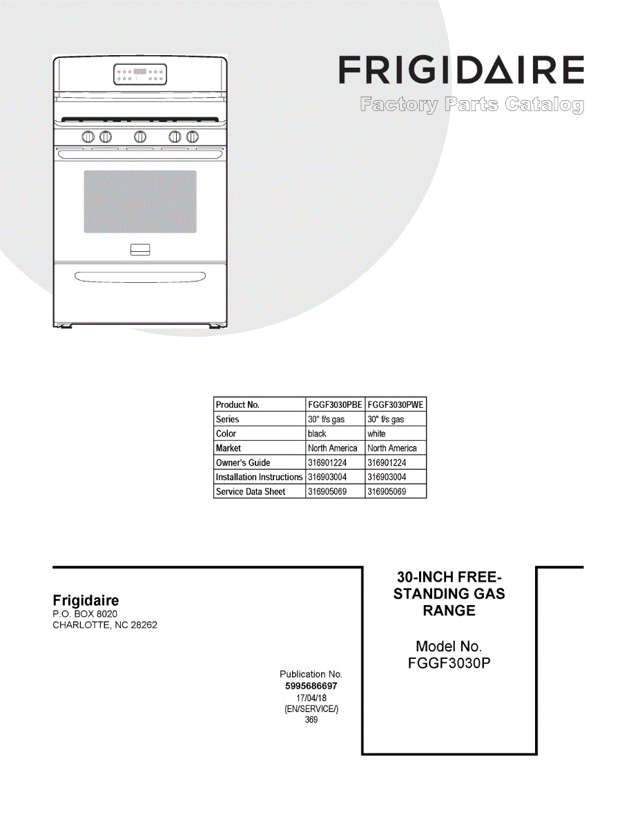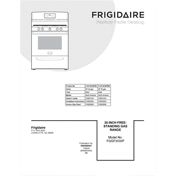 Parts for Frigidaire FGGF3030PBE: 01 - Cover Sheet Parts