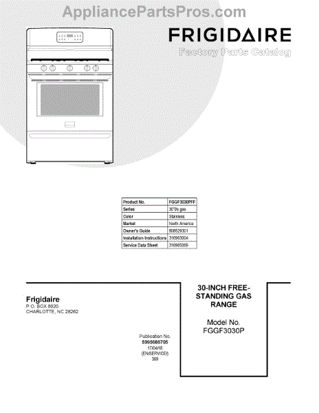 Parts for Frigidaire FGGF3030PFF: 01 - Cover Sheet Parts
