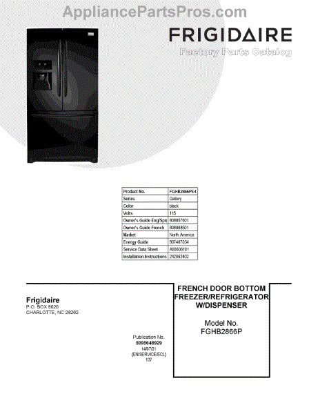 Parts for Frigidaire FGHB2866PE4: 01 - Cover Sheet Parts