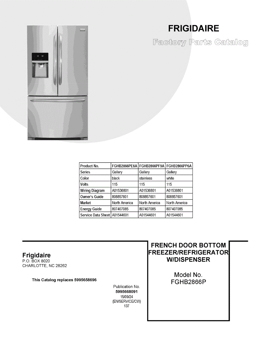 Parts for Frigidaire FGHB2866PE6A: 01 - Cover Sheet Parts