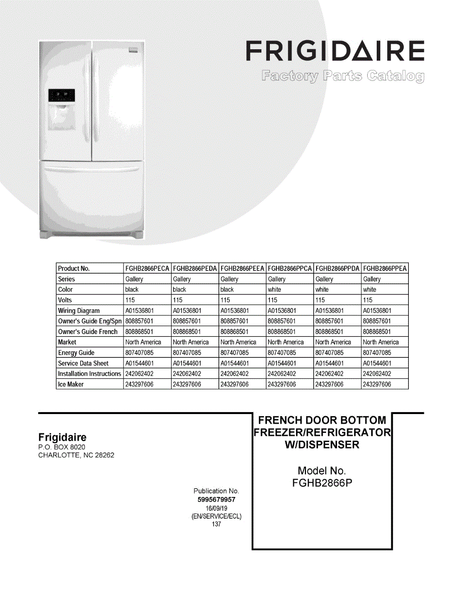 Parts for Frigidaire FGHB2866PEEA: 01 - Cover Sheet Parts