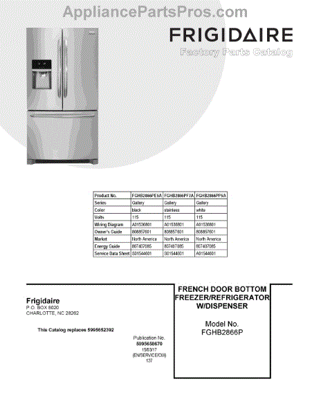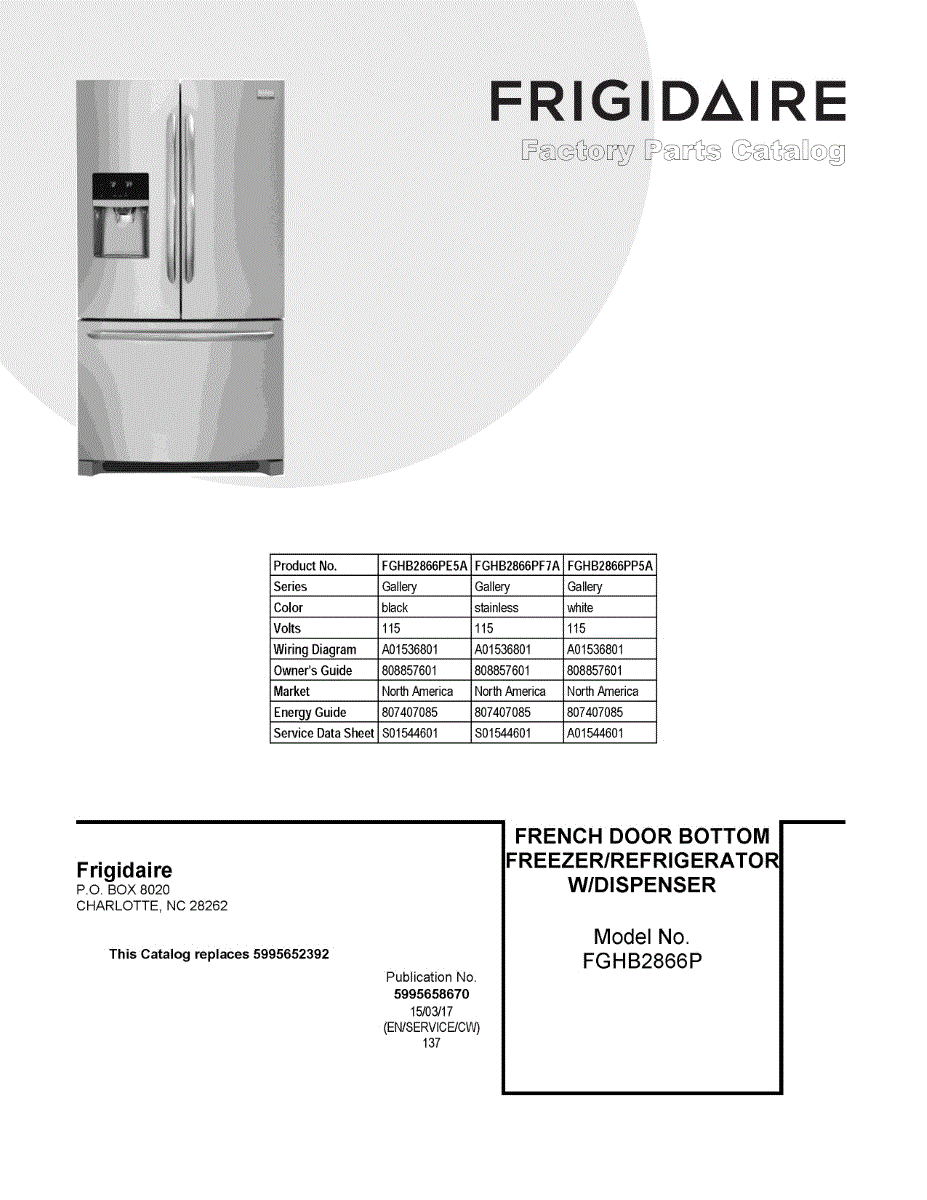 Parts for Frigidaire FGHB2866PF7A: 01 - Cover Sheet Parts