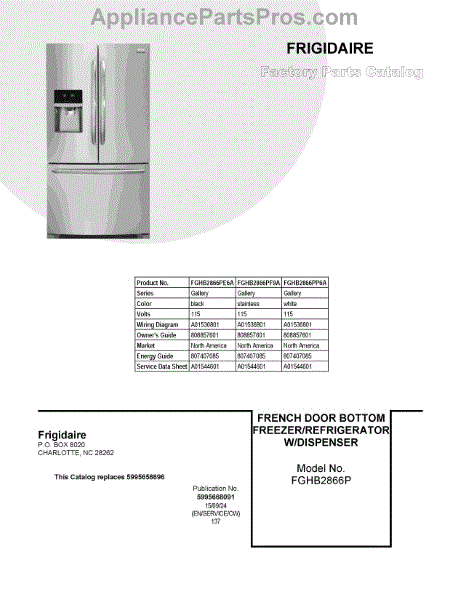 Parts for Frigidaire FGHB2866PP6A: 01 - Cover Sheet Parts