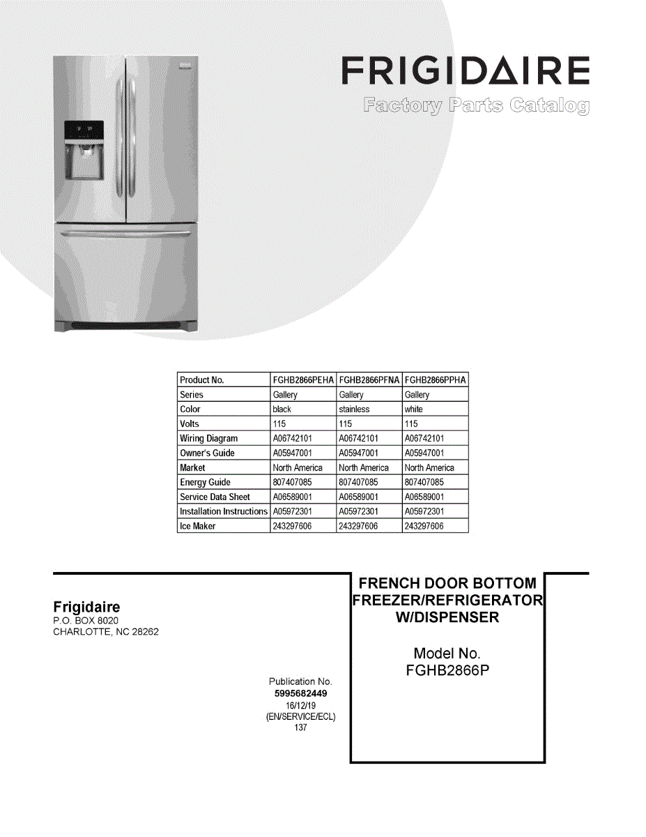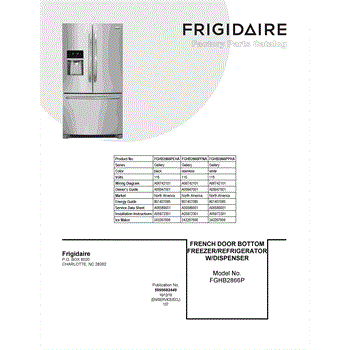 Parts for Frigidaire FGHB2866PPHA: 01 - Cover Sheet Parts