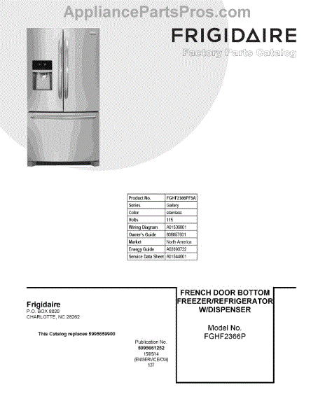 Parts for Frigidaire FGHF2366PF5A: 01 - Cover Sheet Parts