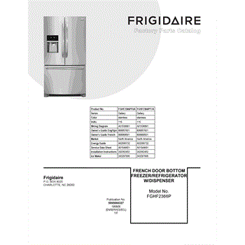 Parts for Frigidaire FGHF2366PF6A: 01 - Cover Sheet Parts