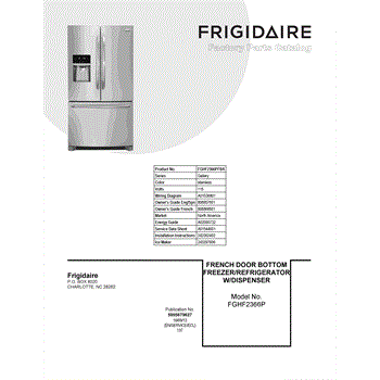 Parts for Frigidaire FGHF2366PFBA: 01 - Cover Sheet Parts