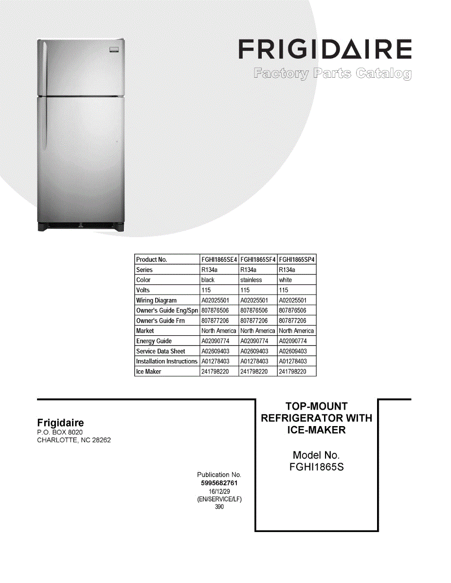 Parts for Frigidaire FGHI1865SP4: 01 - Cover Sheet Parts