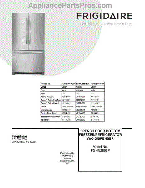 Parts for Frigidaire FGHN2866PP6A: 01 - Cover Sheet Parts