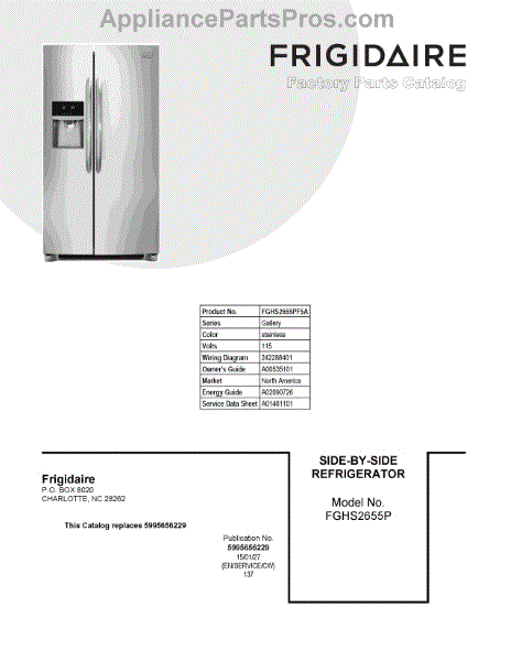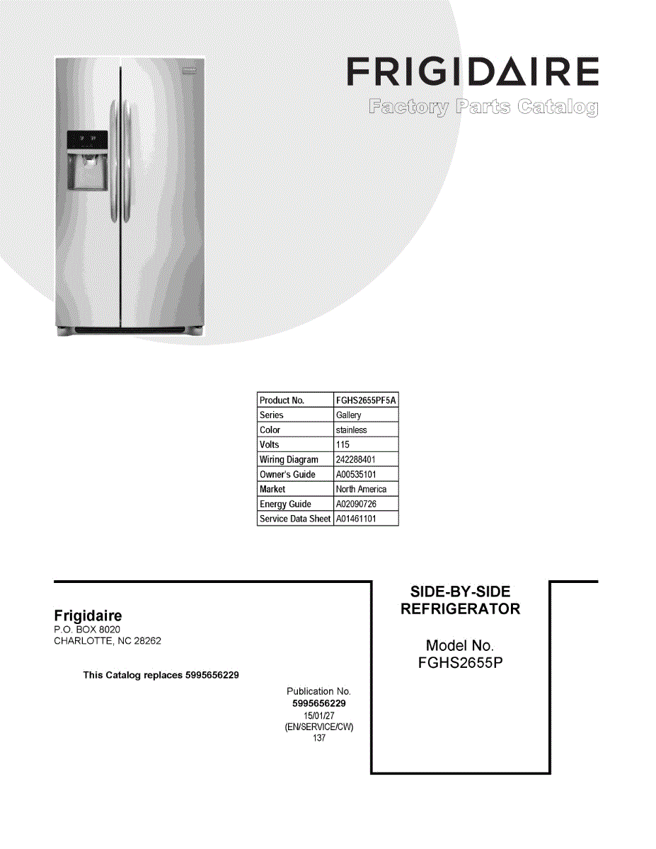 Parts for Frigidaire FGHS2655PF5A: 01 - Cover Sheet Parts