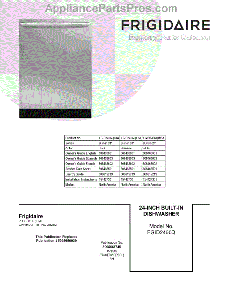 Parts for Frigidaire FGID2466QB3A: 01 - Cover Sheet Parts