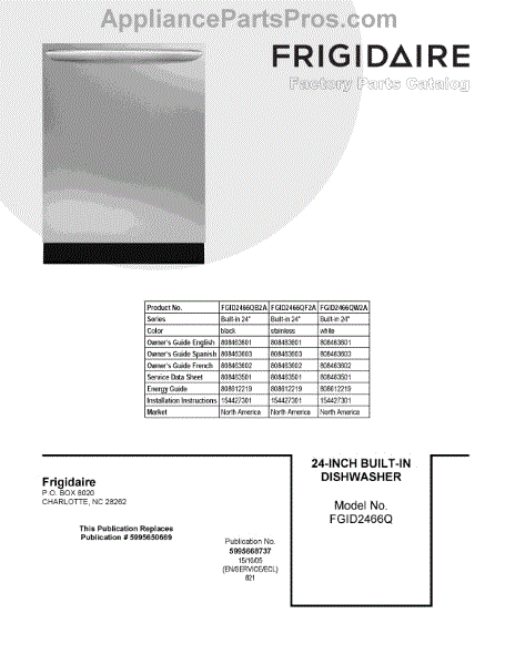 Parts for Frigidaire FGID2466QF2A: 01 - Cover Sheet Parts