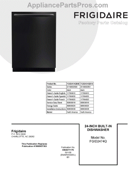 Parts for Frigidaire FGID2474QB1B: 01 - Cover Sheet Parts