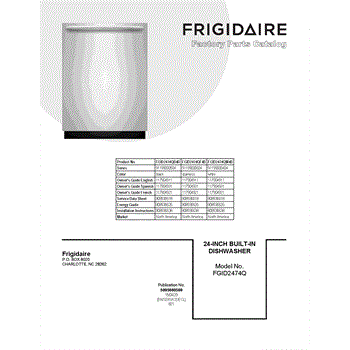 Parts for Frigidaire FGID2474QB4B: 01 - Cover Sheet Parts