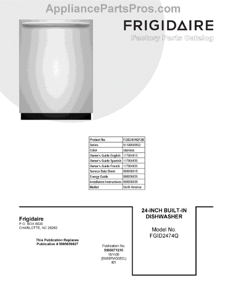 Parts for Frigidaire FGID2474QF2B: 01 - Cover Sheet Parts