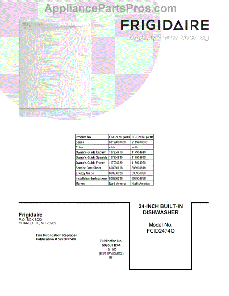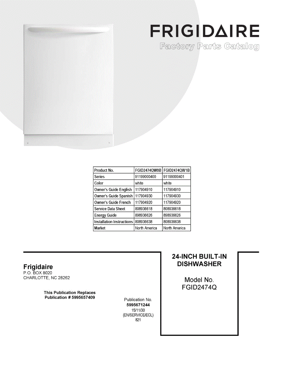 Parts for Frigidaire FGID2474QW0B: 01 - Cover Sheet Parts