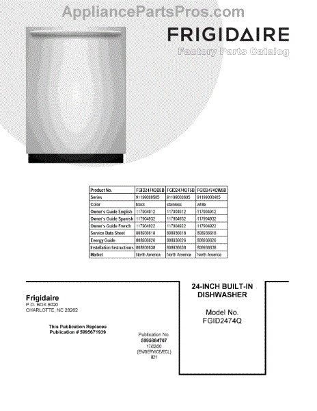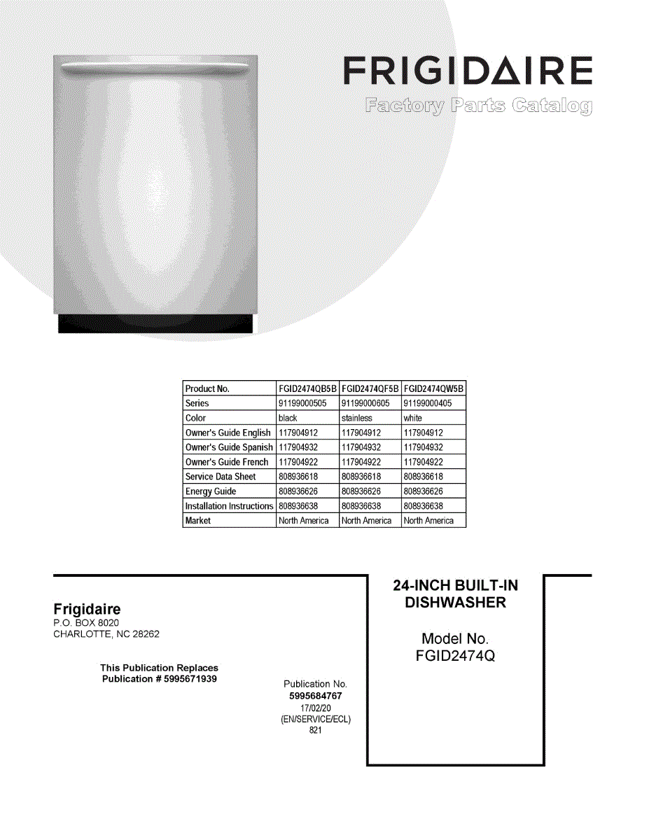 Parts for Frigidaire FGID2474QW5B: 01 - Cover Sheet Parts