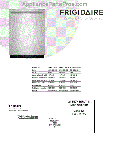 Parts for Frigidaire FGID2474QW6B: 01 - Cover Sheet Parts