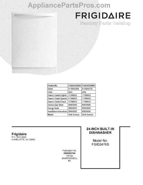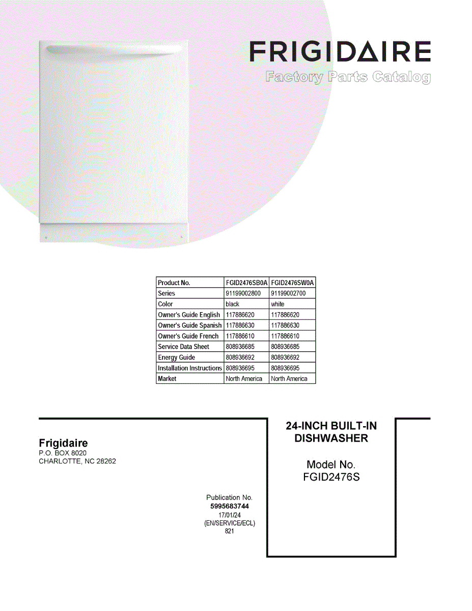 Parts for Frigidaire FGID2476SW0A: 01 - Cover Sheet Parts