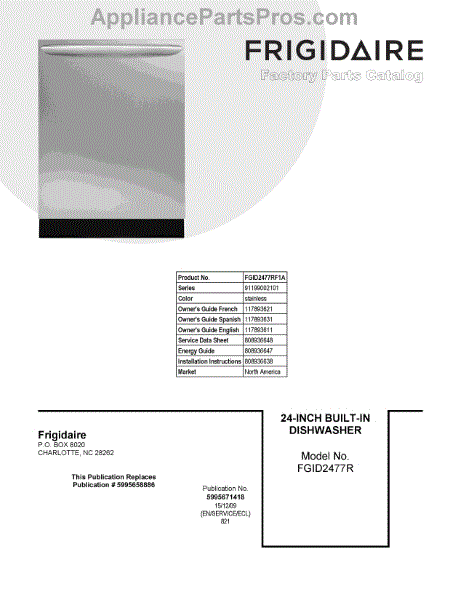 Parts for Frigidaire FGID2477RF1A: 01 - Cover Sheet Parts