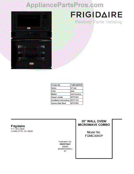 Parts for Frigidaire FGMC3065PBE: 01 - Cover Sheet Parts