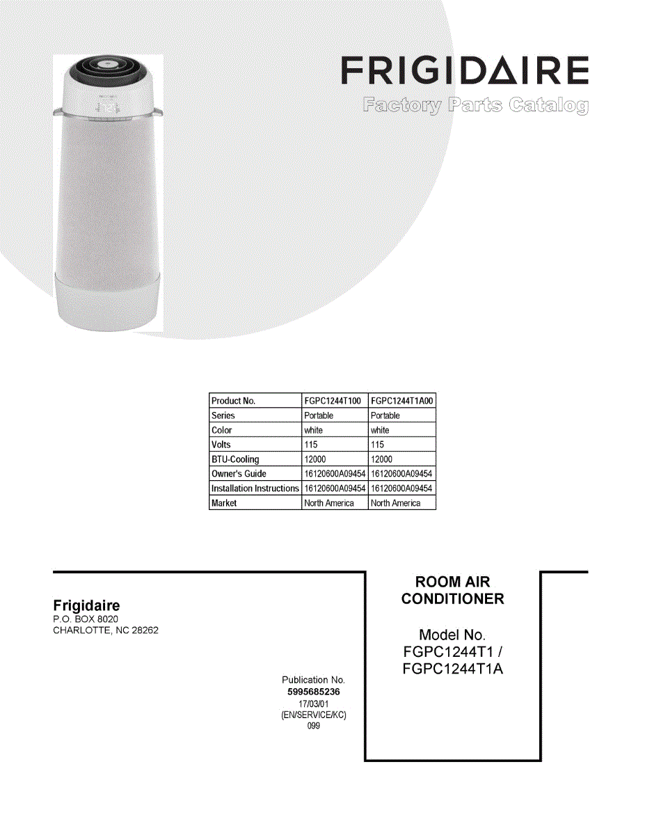 Parts for Frigidaire FGPC1244T1A00: 01 - Cover Sheet Parts