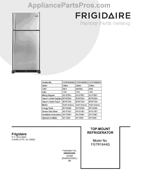 Parts for Frigidaire FGTR1844QP0: 01 - Cover Sheet Parts