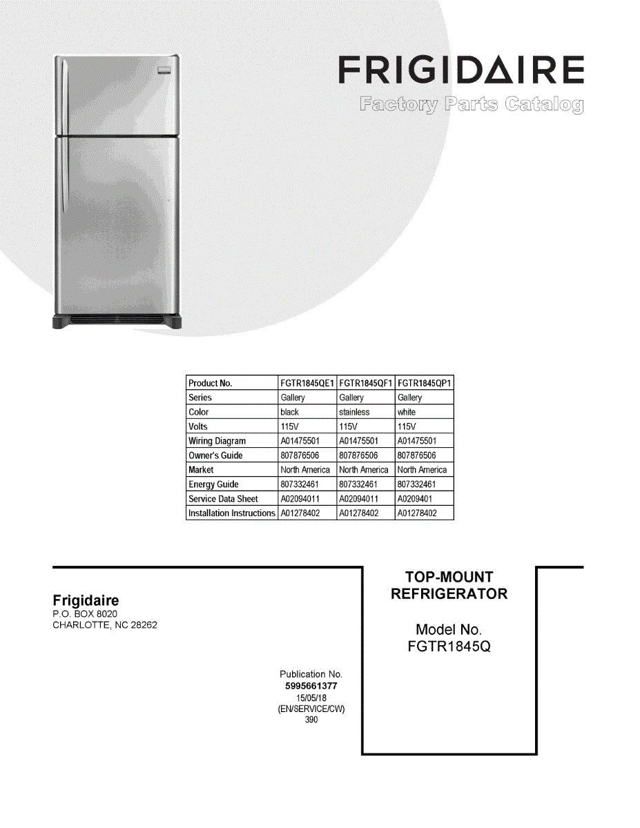 Parts for Frigidaire FGTR1845QP1: 01 - Cover Sheet Parts