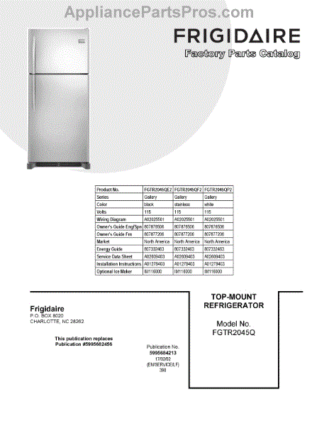 Parts for Frigidaire FGTR2045QF2: 01 - Cover Sheet Parts