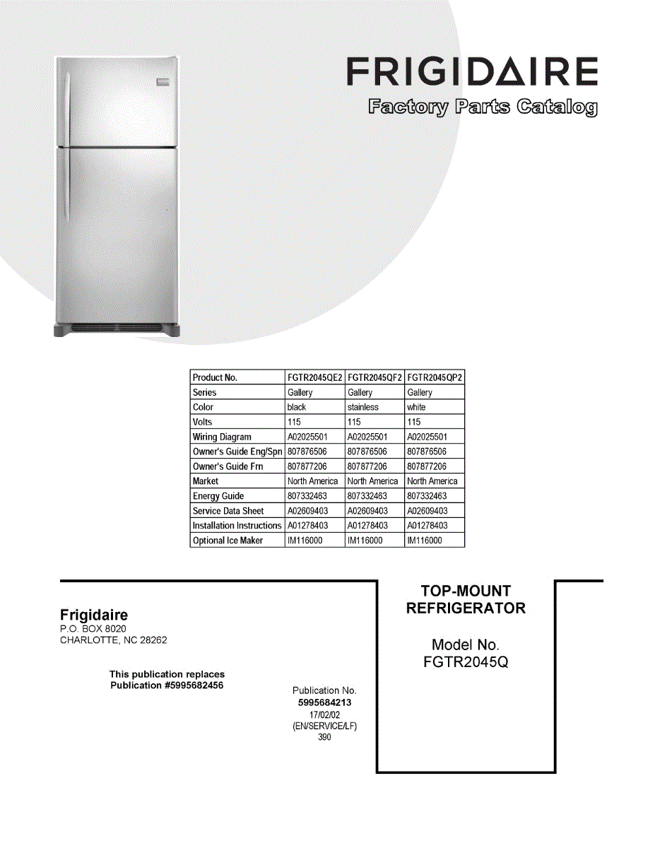 Parts for Frigidaire FGTR2045QP2: 01 - Cover Sheet Parts