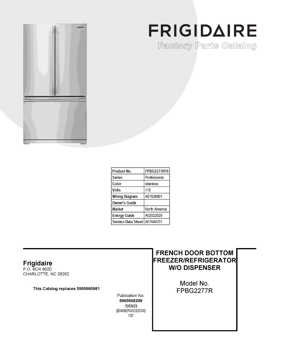Parts for Frigidaire FPBG2277RF0: 01 - Cover Sheet Parts