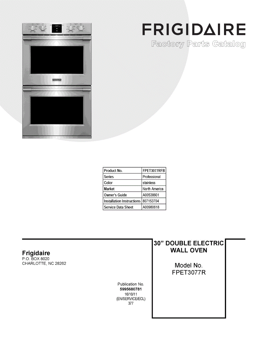 Parts for Frigidaire FPET3077RFB: 01 - Cover Sheet Parts