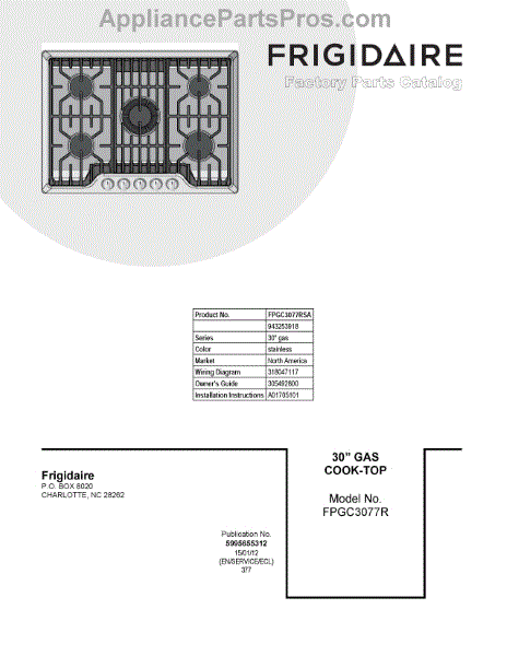 Parts for Frigidaire FPGC3077RSA: 01 - Cover Sheet Parts