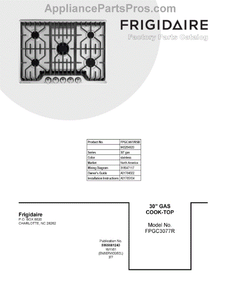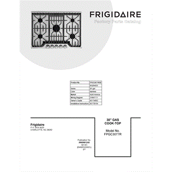 Parts for Frigidaire FPGC3077RSB: 01 - Cover Sheet Parts