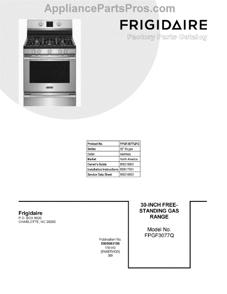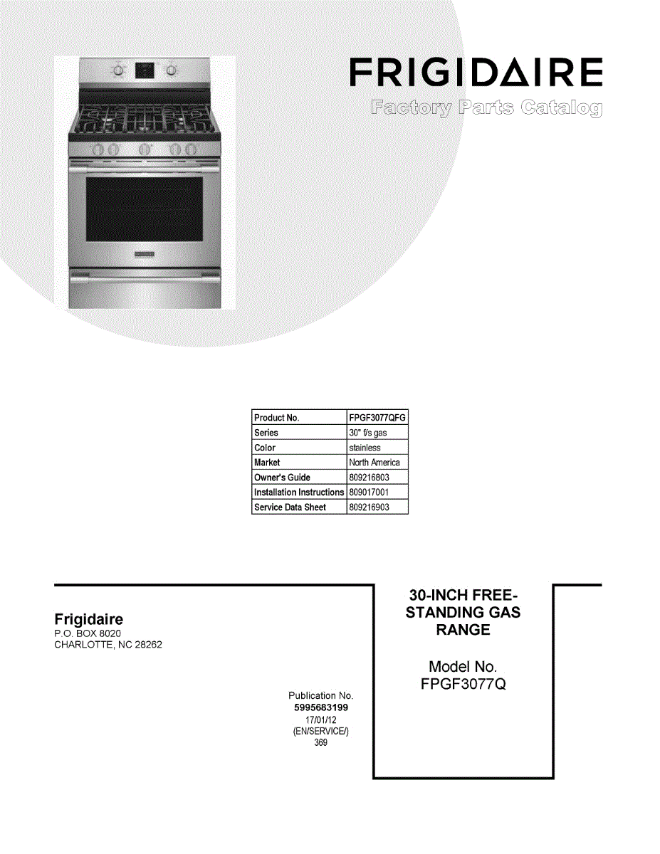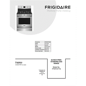 Parts for Frigidaire FPGF3077QFG: 01 - Cover Sheet Parts
