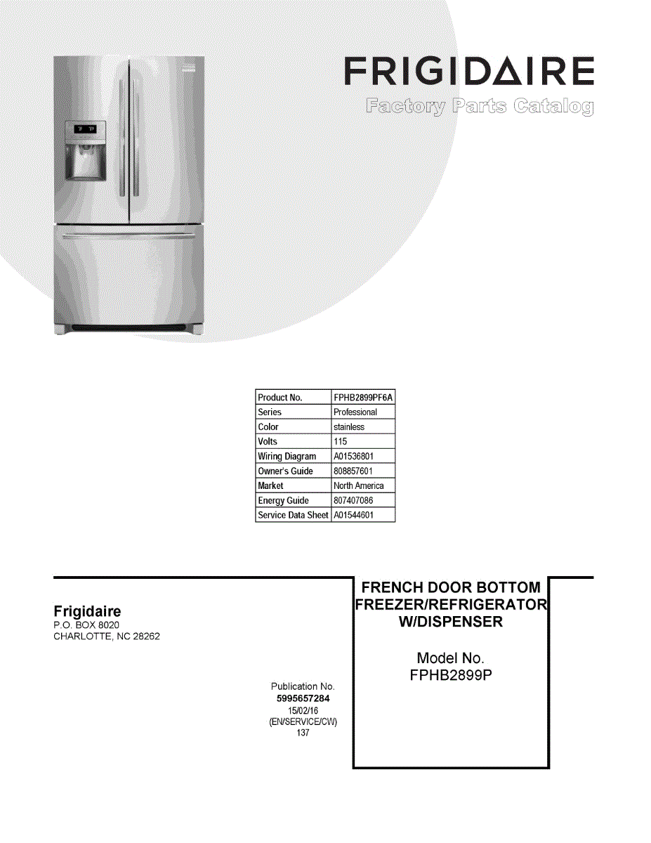 Parts for Frigidaire FPHB2899PF6A: 01 - Cover Sheet Parts