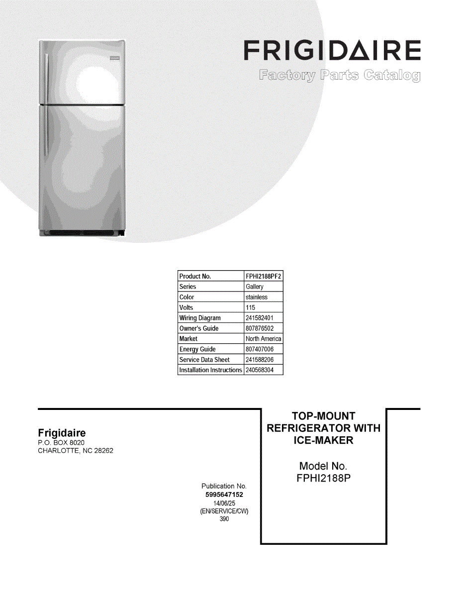 Parts for Frigidaire FPHI2188PF2: 01 - Cover Sheet Parts