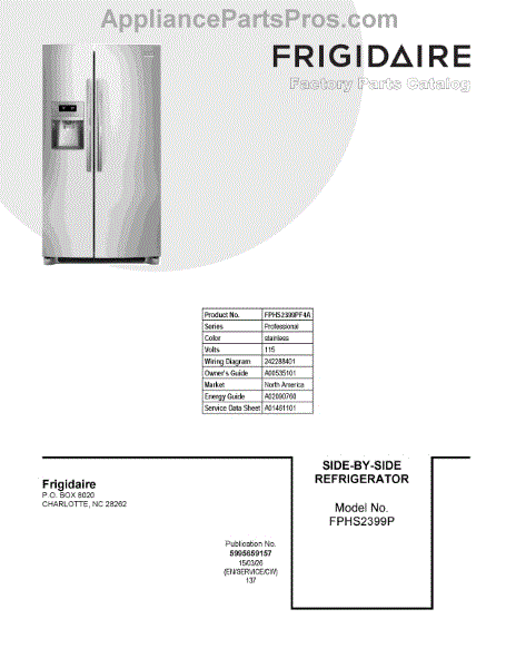 Parts for Frigidaire FPHS2399PF4A: 01 - Cover Sheet Parts