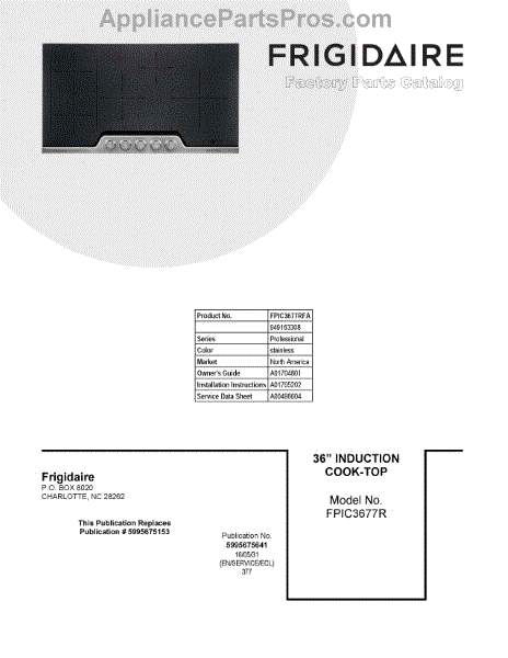 Parts for Frigidaire FPIC3677RFA: 01 - Cover Sheet Parts