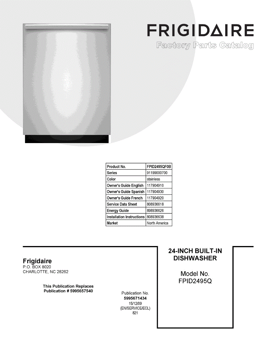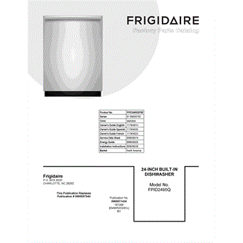Parts for Frigidaire FPID2495QF0B: 01 - Cover Sheet Parts
