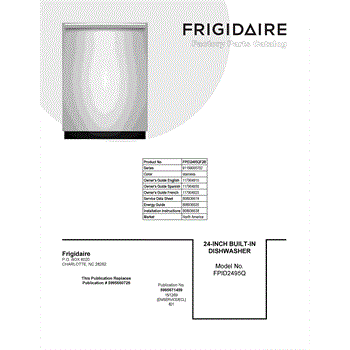 Parts for Frigidaire FPID2495QF2B: 01 - Cover Sheet Parts