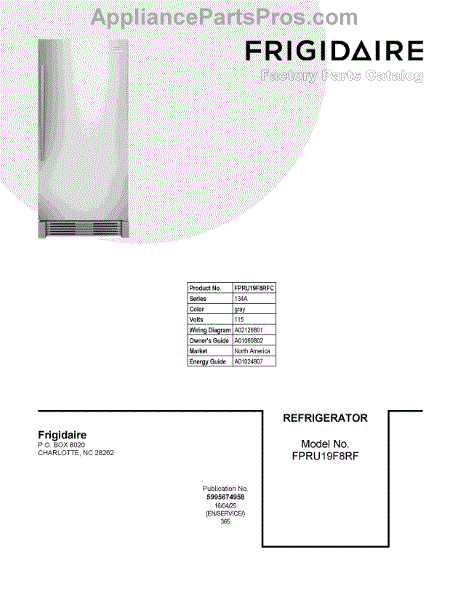 Parts for Frigidaire FPRU19F8RFC: 01 - Cover Sheet Parts