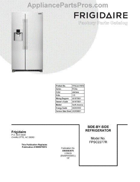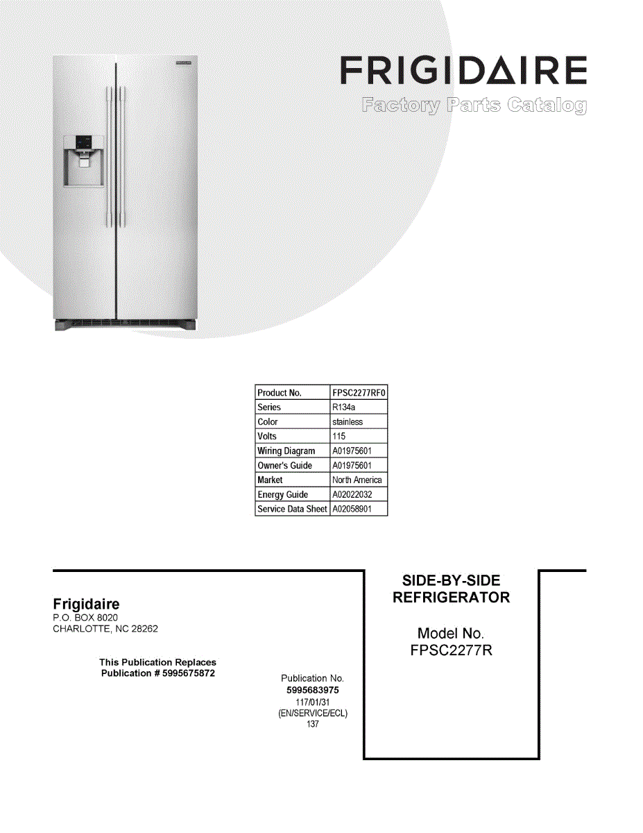 Parts for Frigidaire FPSC2277RF0: 01 - Cover Sheet Parts