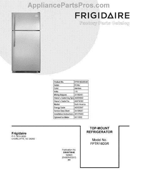 Parts for Frigidaire FPTR18D3RS4A: 01 - Cover Sheet Parts