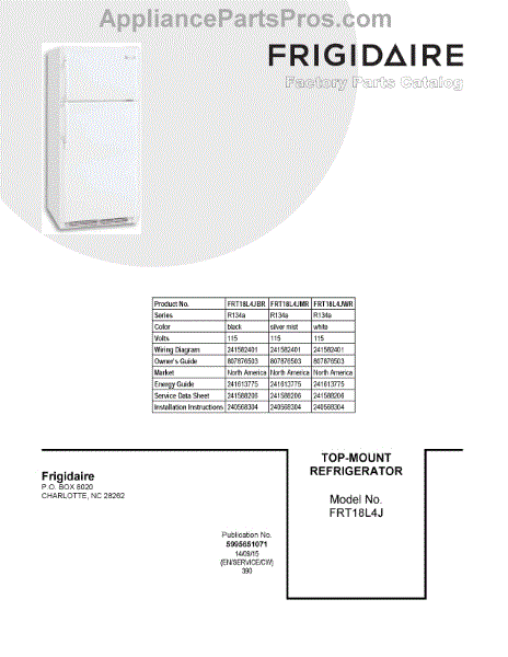 Parts for Frigidaire FRT18L4JBR: 01 - Cover Sheet Parts