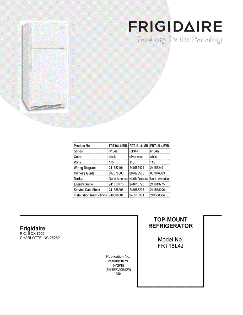 Parts for Frigidaire FRT18L4JWR: 01 - Cover Sheet Parts