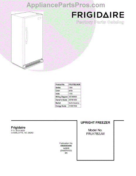 Parts for Frigidaire FRU17B2JW26: 01 - Cover Sheet Parts